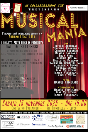 Preparati a una serata coinvolgente e travolgente con “Musical Mania”, un atto unico che ti trascinerà nel mondo del musical attraverso una storia spassosa e divertente!